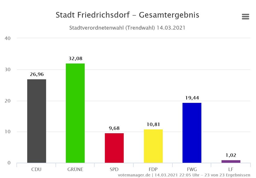 es fällt uns schwer, unsere Freude in Worte zu fassen. Wir sind schlichtweg überwältigt! Nach den Trendergebnissen liegen die GRÜNEN in Friedrichsdorf mit über 30 % der Stimmen als stärkste Kraft vorn.