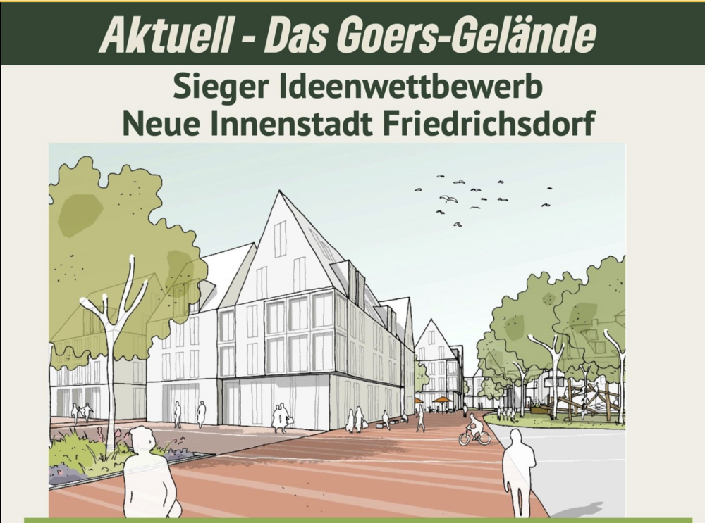 Seit mehr als 20 Jahren diskutieren die Menschen über das Goers-Gelände im Friedrichsdorfer Stadtkern. „Deswegen haben wir den städtebaulichen Wettbewerb sehr begrüßt, der im Rahmen des Stadtentwicklungskonzepts stattfand. Unsere Erwartung war, dass der Blick von außen und die Expertise von Stadtentwicklerinnen und Architekten uns hilft, die jahrelange Blockade aufzulösen und gemeinsam zu einer Lösung zu kommen“, so die grüne Fraktionsvorsitzende Daniela Fox.